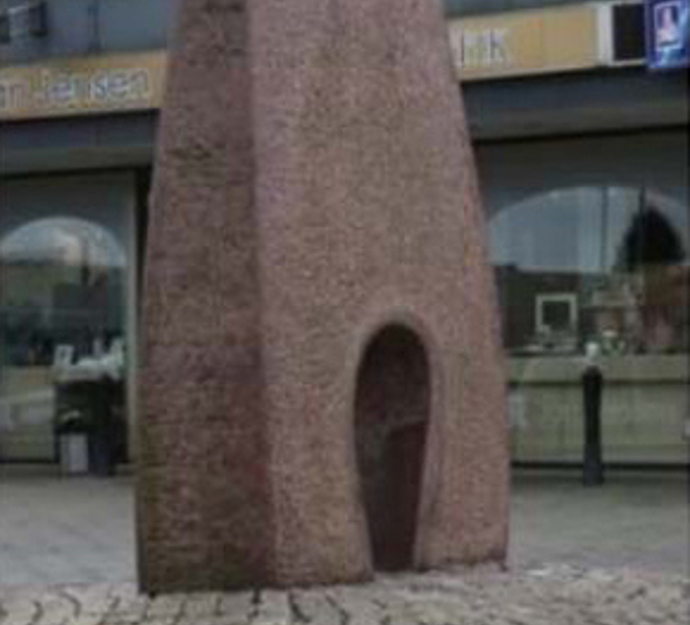 At first, viewers of Gateway think the title is meant to be taken at face value. However, the subtle twist lies in the small block of stone embedded among the paving stones in front of the entrance to the Gateway, which the artist refers to as “a tripping stone”. This is his comment on the difficulty one can have getting through the gateway to Denmark, given that – geographically speaking – the Danish–German border and his Gateway are in very close proximity.