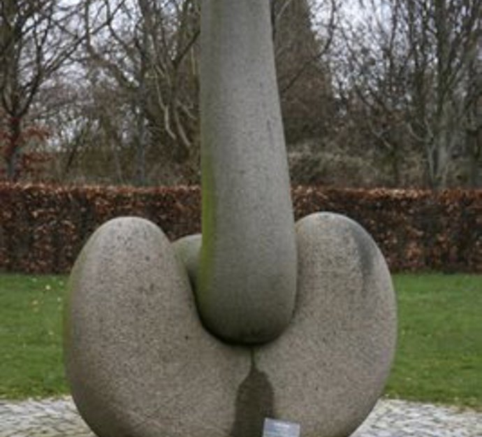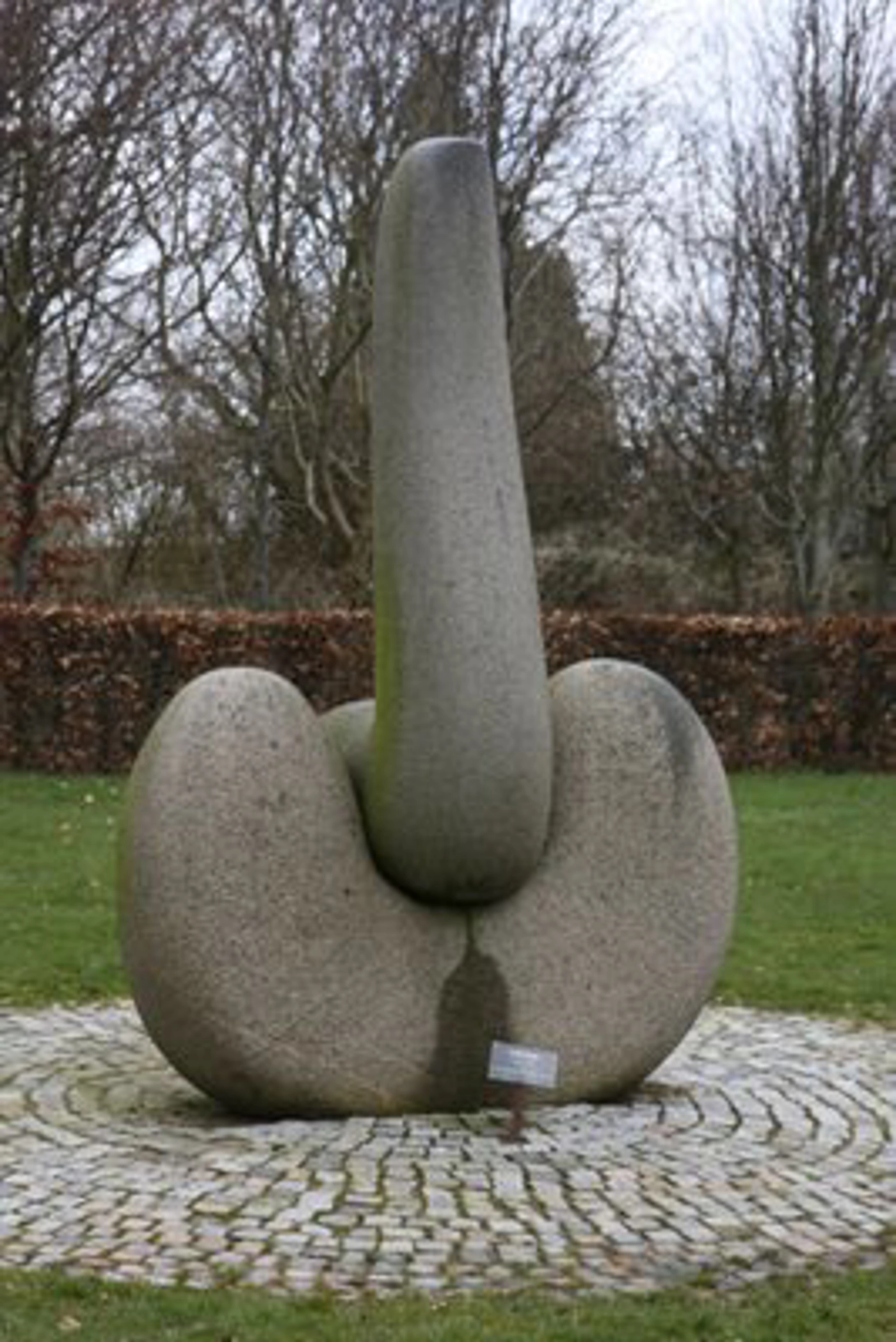 Working the hard granite, Ole Christensen has created two soft, curved elements that follow and fuse with one another, and which – depending on the eyes of the beholder – form a bird, a phallos, or a germinating seed. This sculpture and its title refer to nature as a creating, life-giving force.