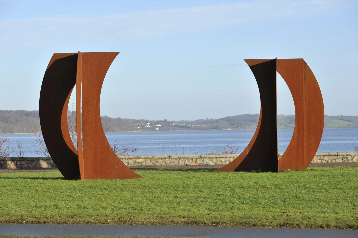 The sculpture Two figures on a beach, which greets those approaching Aabenraa from the south, has the size and clout it takes to match its neighbour, the former county headquarters on the opposite side of the Flensborgvej highway.