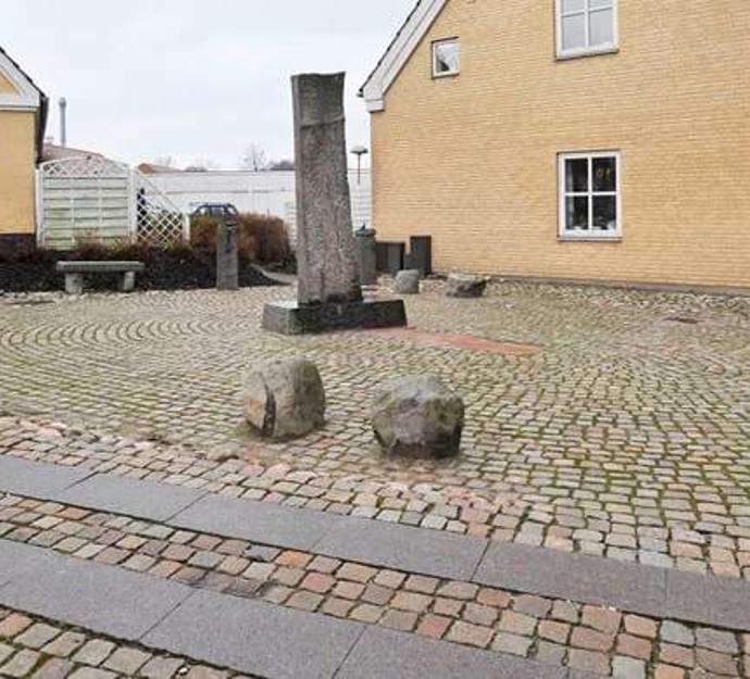 Die bearbeiteten Granitsockel dienen auch als Teil der Ausschmückung, zum Beispiel die hohe Stele, in deren rauer Oberfläche ein glattes, kreuzförmiges Relief erscheint, was wiederum auf Klipleff als Knotenpunkt für Pilger auf ihrer Reise verweist.