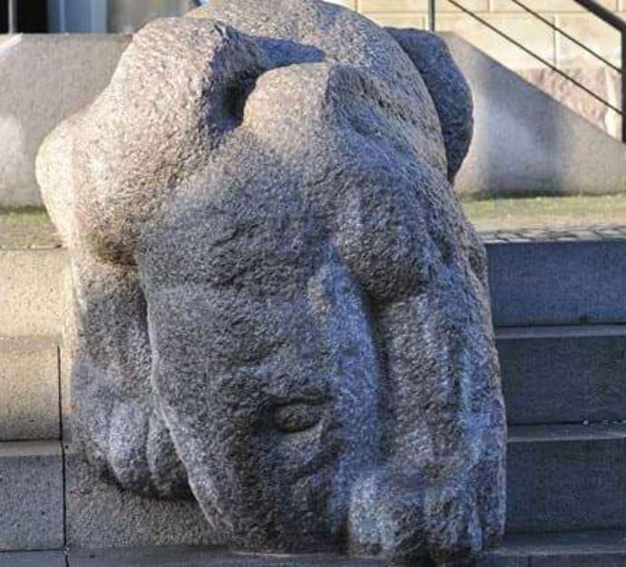 Geballte Kraft steckt in Claus Ørntofts Felsentier, das auf den Stufen des alten Rathauses im Herzen von Apenrade kauert. Kinder, die einen Ritt auf ihm wagen, vorbeikommende Brautpaare, das Lachen und bunte Treiben der Menschen in der Fußgängerzone: Das Felsentier mit seiner erhabenen Gelassenheit bringt nichts aus der Ruhe. Schließlich ist es Jahrtausende alt und von isländischen Sagen und der nordischen Mythologie abgeleitet.