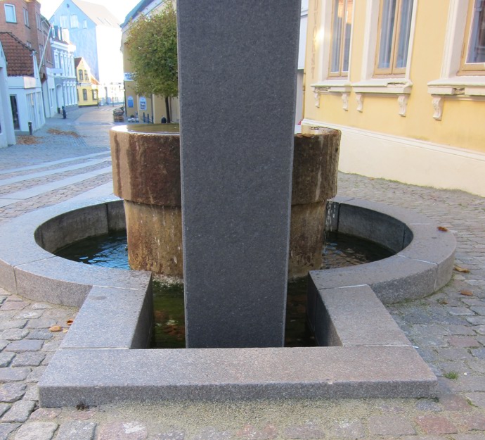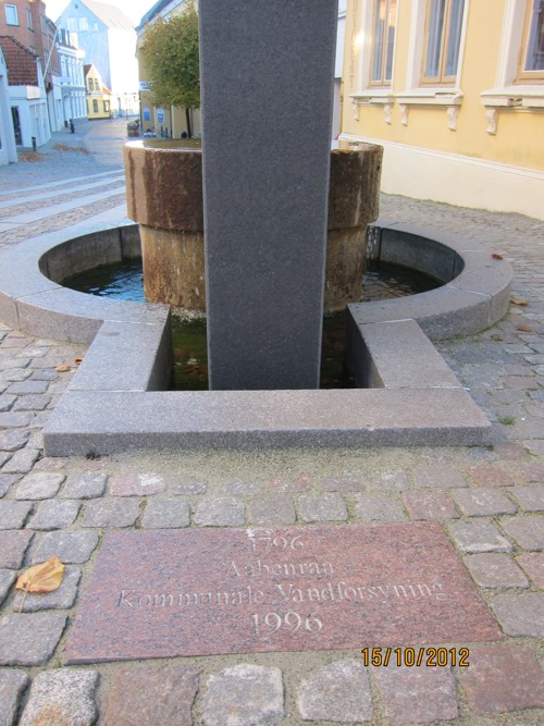 Die Apenrader Fußgängerzone wurde 1996 renoviert, und gleichzeitig feierte das Wasserversorgungsunternehmen sein 200-jähriges Bestehen. Zum Gedenken wurde diese von zwei Architekten und einem Ingenieur aus Apenrade entworfene Wasserskulptur errichtet.