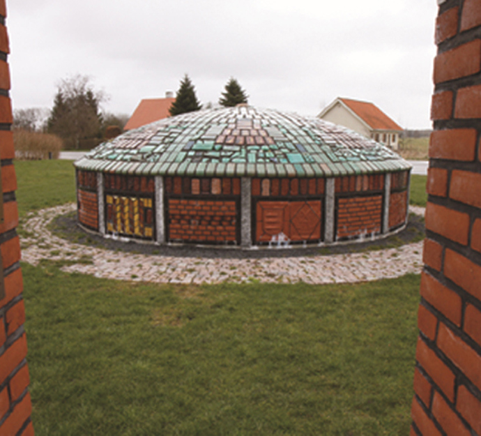 Für die Arbeiten wurden sowohl neue Steine als auch schön glasierte Bruchsteine, also Abfallmaterial, aus der Ekensunder Ziegelei verwendet. Die Bruchsteine wurden in den nahen Fördegewässern gefunden. Der Rundgang um die Skulptur endet am Wappen der Kommune Apenrade, womit sich Vergangenheit und Zukunft miteinander verbinden. Die Halbkugelform der Skulptur kann als Nachahmung der mongolischen Jurte angesehen werden, jenem speziellen Zelt, das den Nomaden als Heimstatt und sichere Basis diente