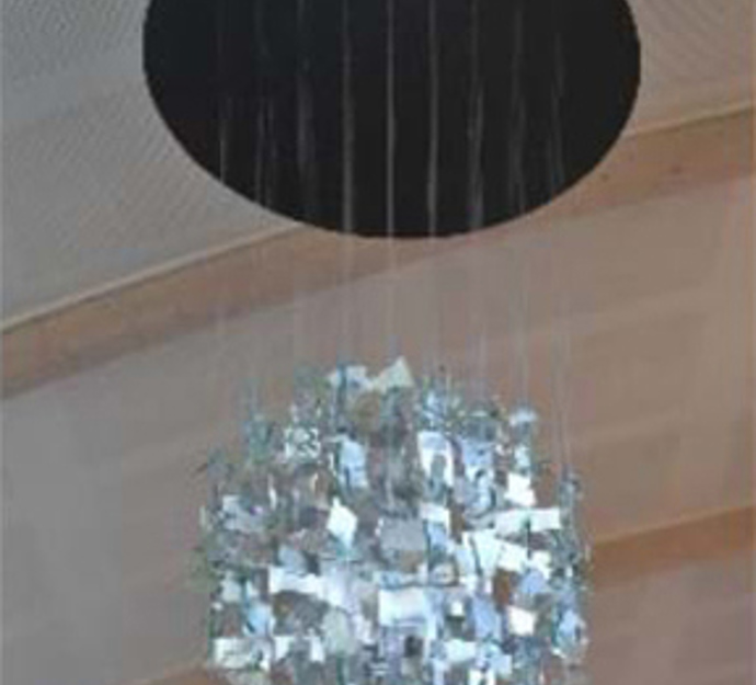 Glasscheiben, Glasfaser und Holz sind unter anderem Materialien die Steffen Tast in seinen Werken verwendet. Anstatt einfach eine Skulptur oder eine Malerei aufzuhängen, inszeniert er den ganzen Raum mit seinen Installationen.